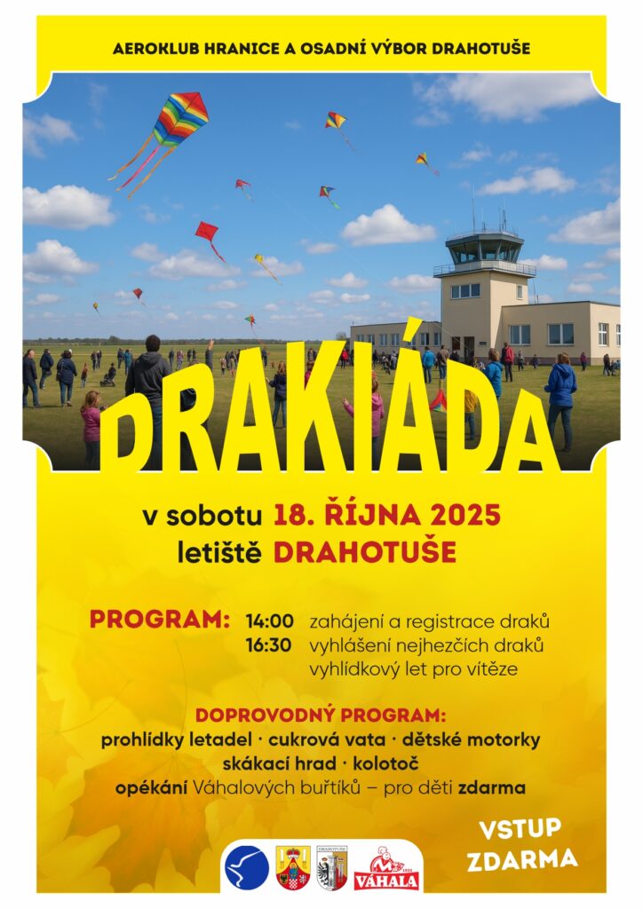 Srdečně vás zveme na Drakiádu 2025, která se uskuteční tradičně u nás na letišti v sobotu 18. října 2025.